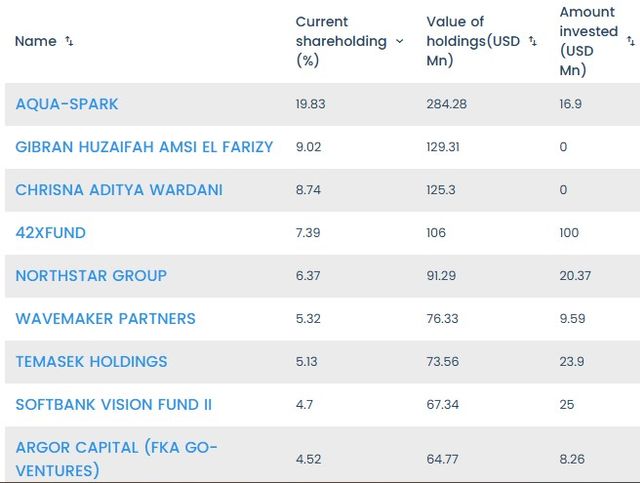 Top shareholders of eFishery